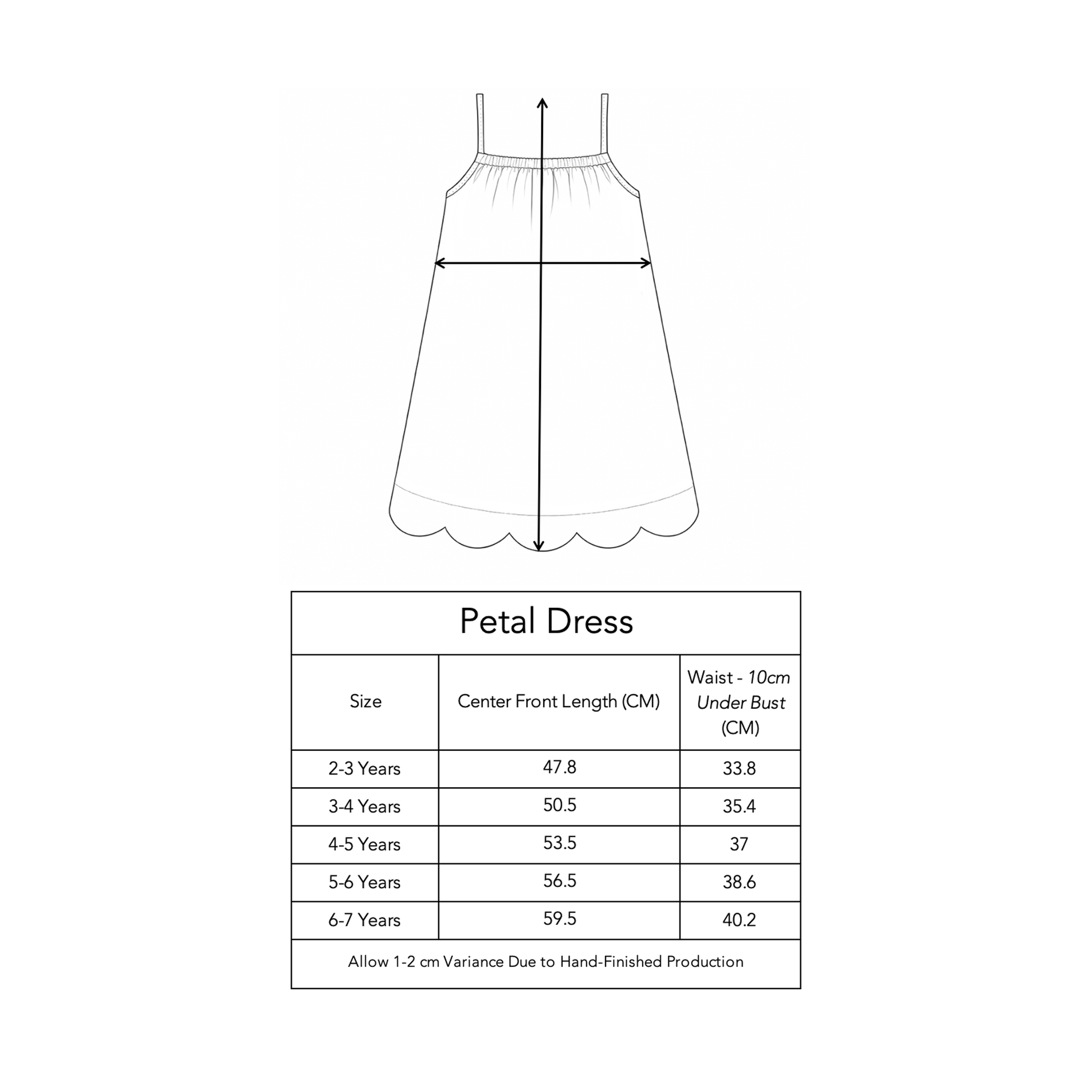 Our sizing is generally true to size for your Little Lady; if you are between sizes, we usually suggest choosing the size she is in now or will be coming into for spring and summer. We are finalising our detailed measurement chart; in the meantime, please do not hesitate to get in touch via our Help section if you need specific measurements.